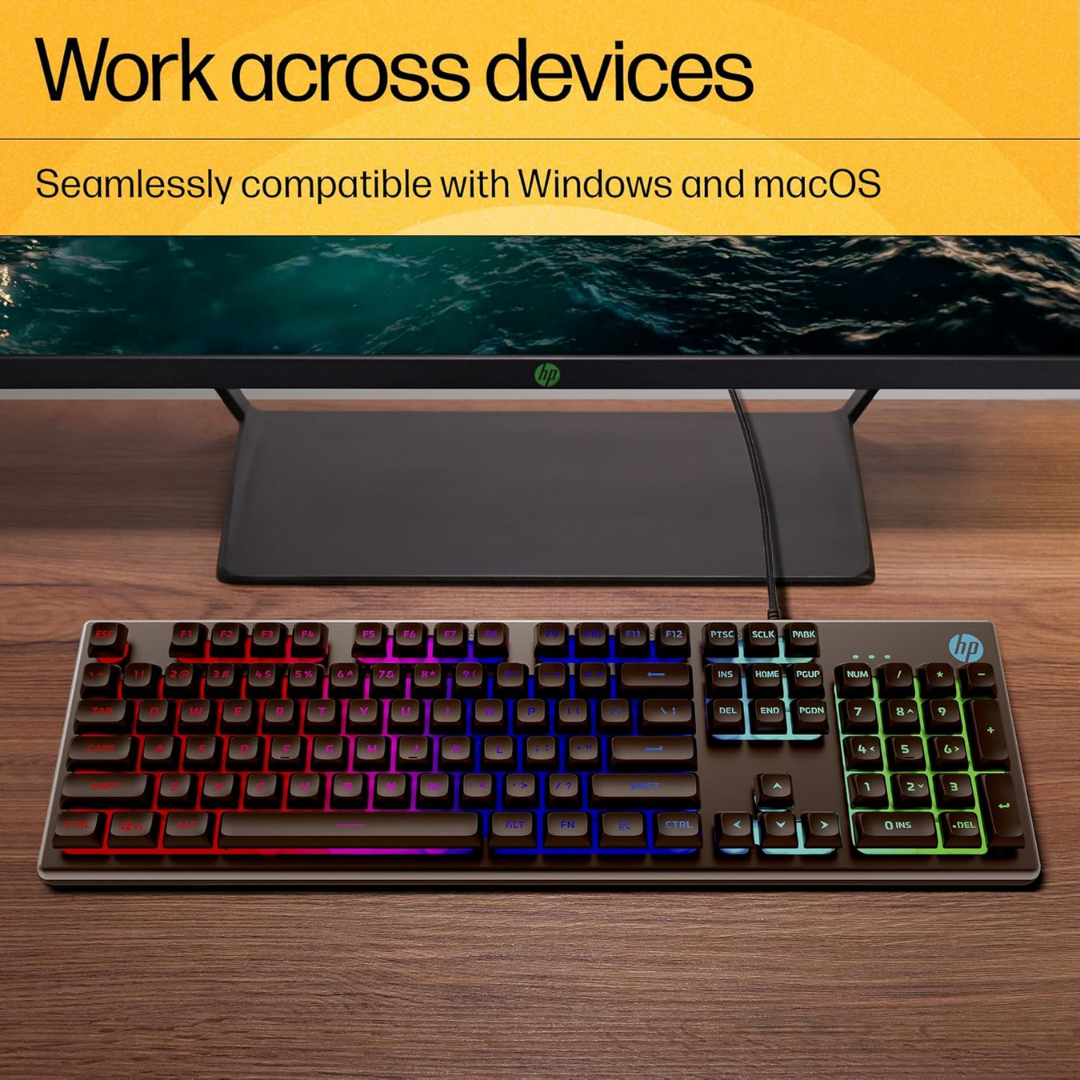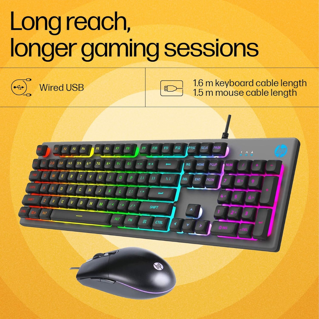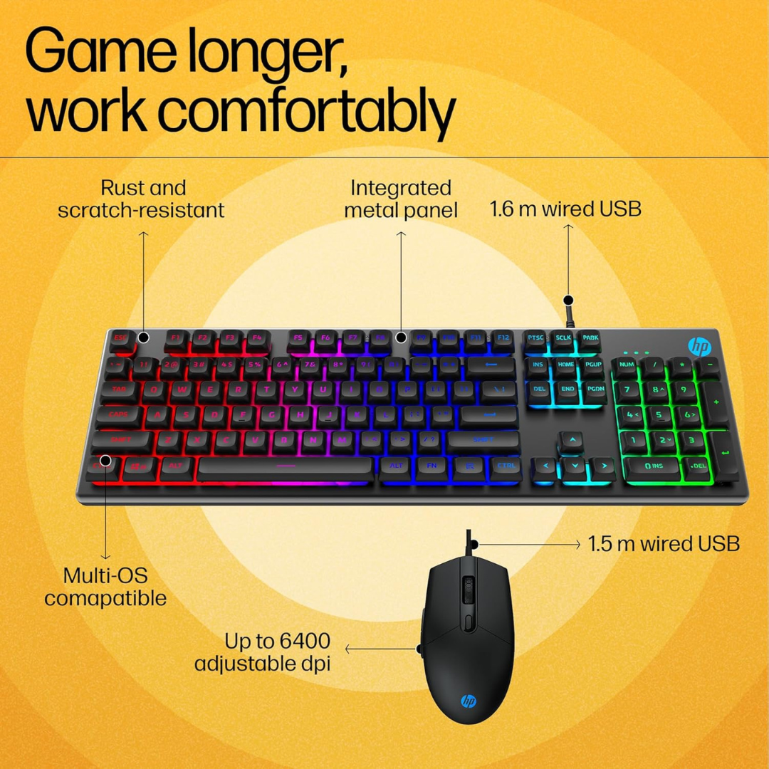 HP KM300F Wired USB Gaming Keyboard and Mouse Set, Membrane Backlit, 26 Keys Anti-Ghosting, 3 LED Indicators & 3D 6K USB Mouse with 6400DPI,Six-Speed Cyclic Resolution Switching, Black